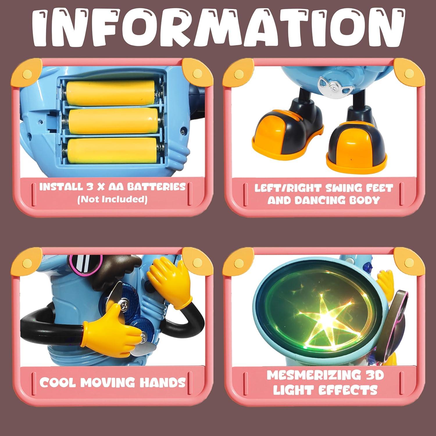 🤩INTERACTIVE FUN :- This VGRASSP Dancing Mr. Rock Saxophone Toy features a variety of rock and roll tunes, engaging children with lively music. It is a saxophone shaped character that performs dynamic dance moves and 3D lights, adding visual entertainment. It also comes with air blowing function which simulates playing a real saxophone, press and hold the button above the hand and blow air into the small hole on top left side of the toy to enjoy saxophone music., ⚙️KEYS AND FEATURES :- It is equipped with 3 functional keys. First key is to switch between different rock and rolls music tunes, Second key allows you to make Mr Rock dance left to right with swinging hands, the third key is the volume control feature to adjust the sound level, allowing for a quieter playtime or a louder, more energetic experience accompanied with 3D lighting., 💡FUN LEARNING :- Musical dancing Mr. Rock toy offers a range of educational benefits for young children. It helps children understand rhythm and timing through music, which is foundational for future musical skills and general auditory processing. It encourages physical movement and dancing, which improves gross motor skills, provides multi-sensory experiences through music, lights, and movement, supporting sensory integration and processing skills., 👌EASY TO USE :- Our Mr. Rock musical dancing toy is very easy to use. Open the battery compartment cover at the back and install 3 AA batteries (not included in package) and screw back the cover. The left hand of the saxophone toy works as power ON/OFF switch, simply push down the left hand of the toy character to switch and it is ready to rock and roll and entertain your little kids., ✅SAFE AND CHILD-FRIENDLY :- The toy is designed with round and soft edges and made from non-toxic materials, ensuring the safety of children during play. It meets the safety standards to ensure parents the peace of mind. The toy is built with sturdy materials to withstand rough play and ensure durability.